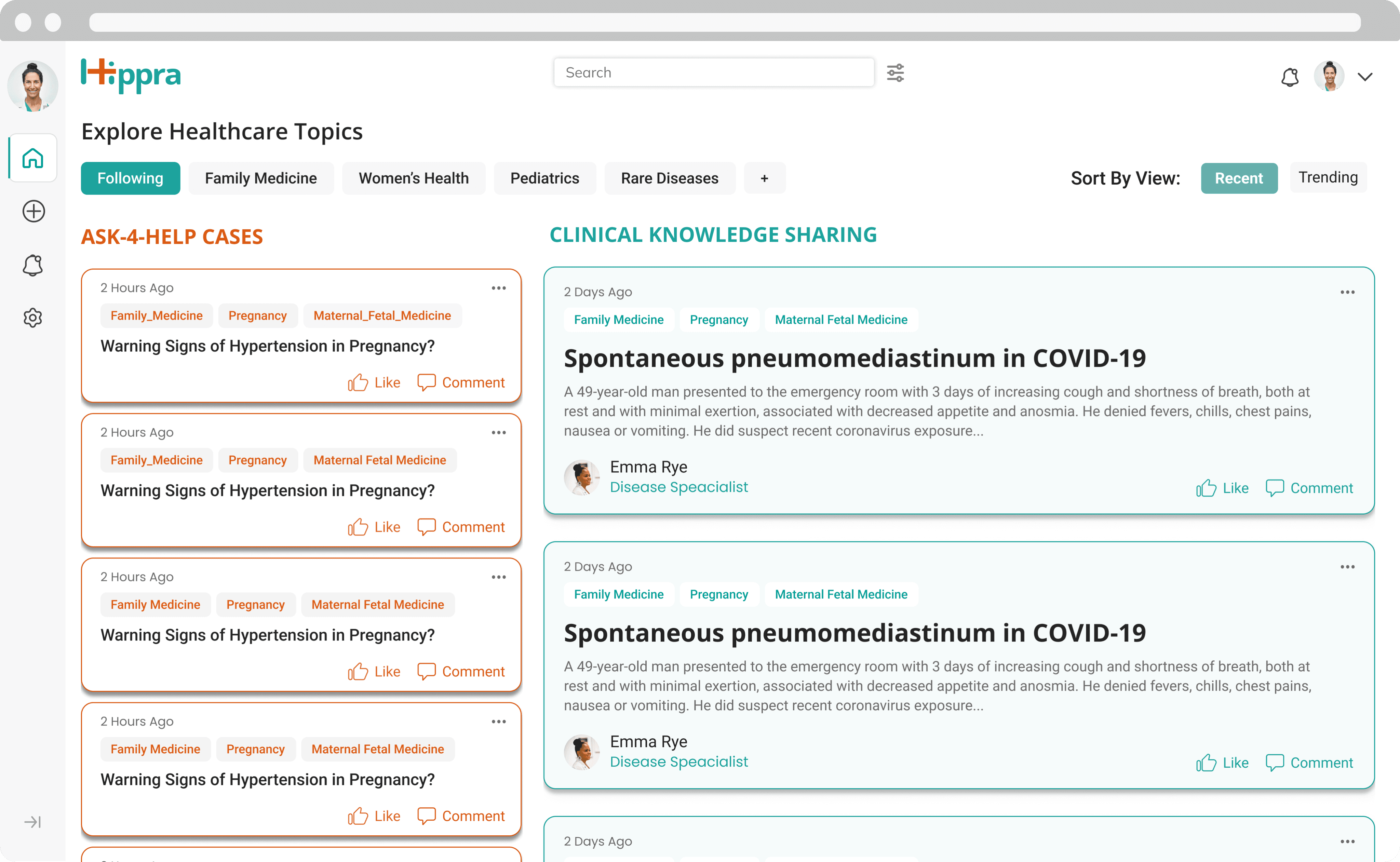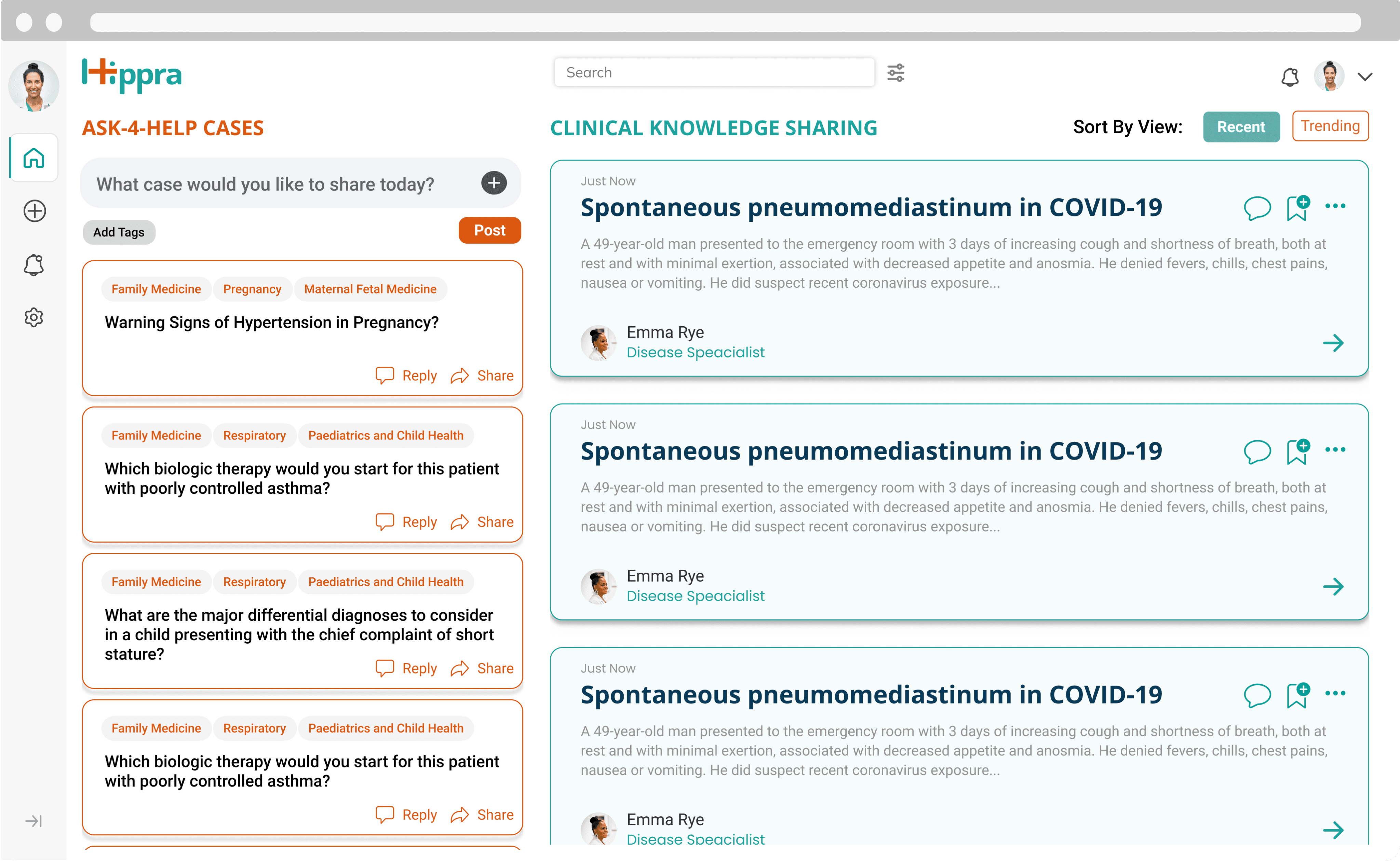 Hippra is a platform designed to revolutionize healthcare information access, enabling professionals to collaborate, seek second opinions, and share their expertise seamlessly. I worked with the UX Design team to build the Hippra product from MVP and one of the main projects I worked on was rethinking and redesigning Hippra user dashboard page.