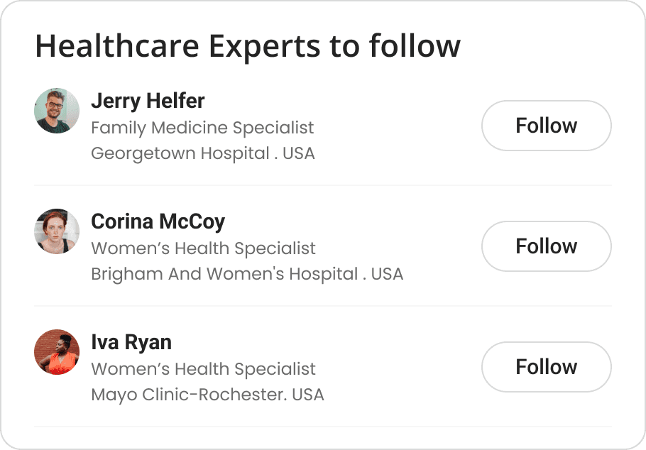 2. Suggested ‘healthcare experts to follow’ which adds to personalizing the dashboard feed