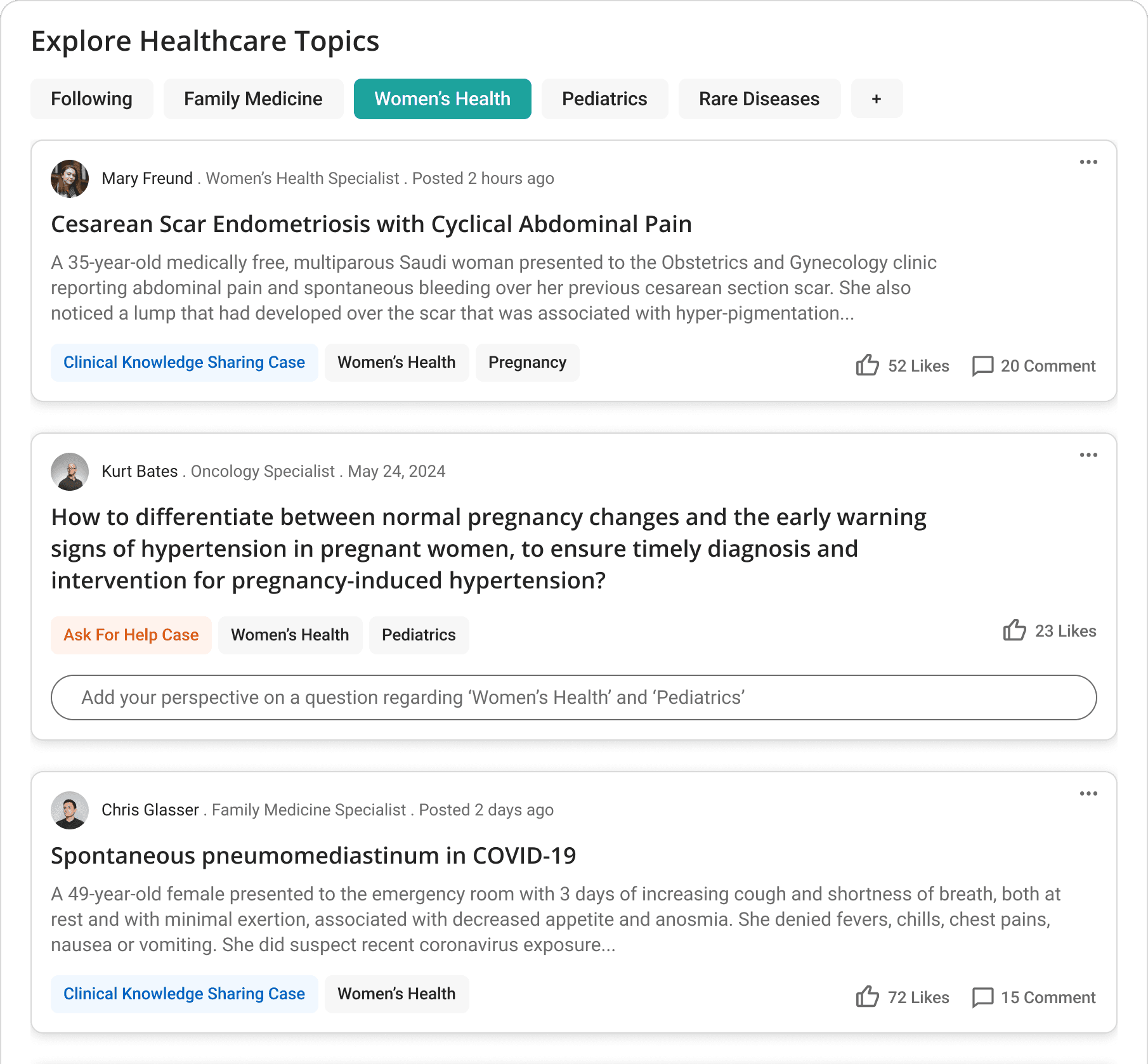 This generic list of cases was making it difficult for healthcare professionals with specific expertise like- Pediatrics, Women’s Health, and Psychology to find the content of their liking.